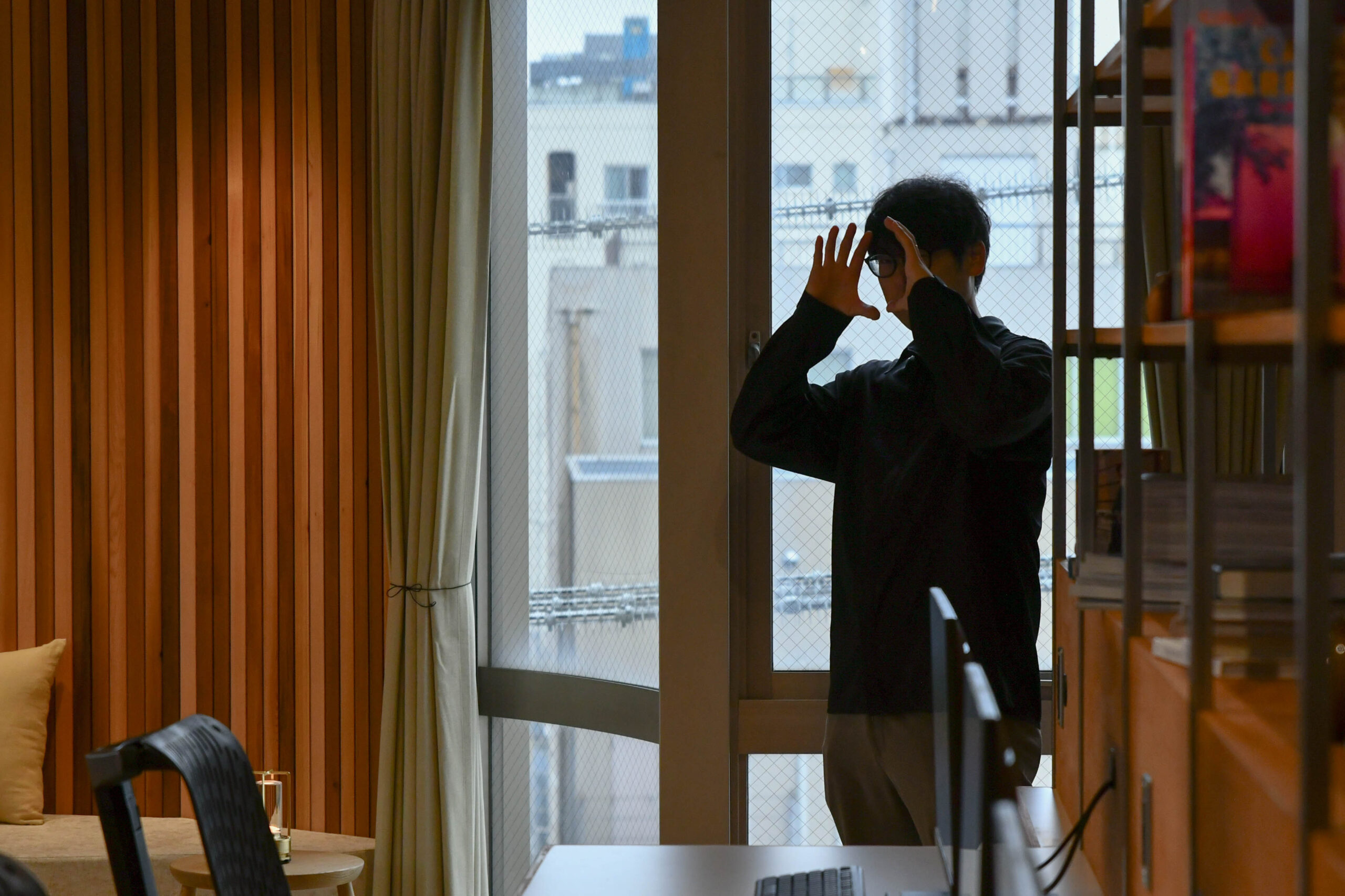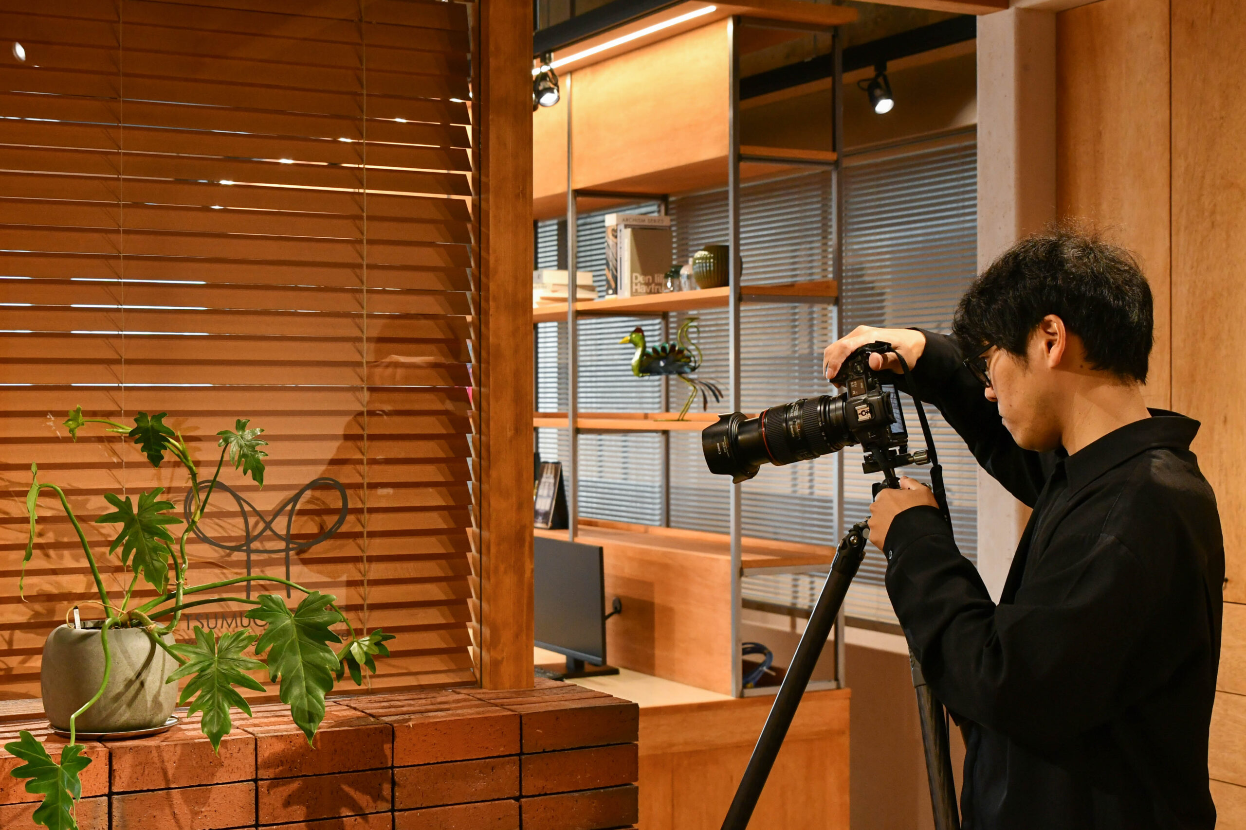 また、三脚を出してきてからもカメラマンさんはオフィス内を歩き、手をレンズのようにしてアタリをつけてから三脚を持ち運んで撮影していました。